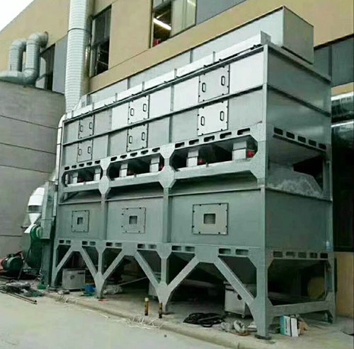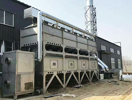 在化學(xué)反應(yīng)過程中,利用催化劑降低燃燒溫度,加速有毒有害氣體完全氧化的方法,叫做催化燃燒法。由于催化劑的載體是由多孔材料制作的,具有較大的比表面積和合適的孔徑,當(dāng)加熱到300~450℃的有機氣體通過催化層時,氧和有機氣體被吸附在多孔材料表層的催化劑上,增加了氧和有機氣體接觸碰撞的機會,提高了活性,使有機氣體與氧產(chǎn)生劇烈的化學(xué)反應(yīng)而生成CO2和H2O,同時產(chǎn)生熱量,從而使得有機氣體變成無毒無害氣體。